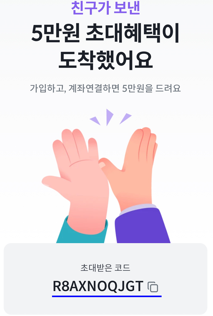 2️⃣ 초대코드 입력 + KB국민은행 계좌 연동 시 5만원 추가 지급