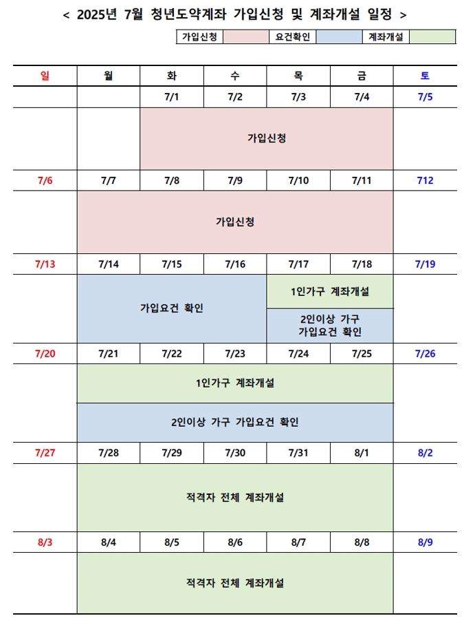 3) 청년도약계좌 신청 및 개설 주요 일정